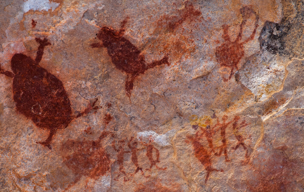 “Já que línguas não fossilizam, dependemos também de evidências indiretas que não estão na alçada da linguagem”, comenta Nóbrega. “Nesse caso, podemos olhar para o registro arqueológico desconfiando que a presença de símbolos descobertos ali implique alguma expressão não só material, mas também linguística.” Para ele, é sintomático que, (relativamente) não muito após os 135 mil anos, se observe uma emergência de cultura material com rápida propagação.