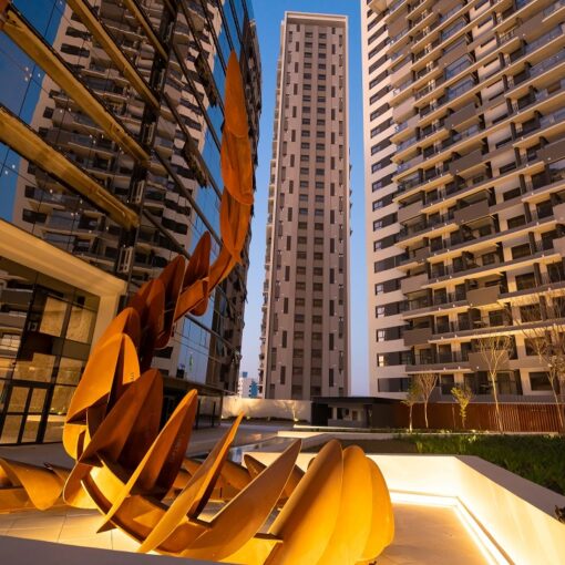 Escultura está instalada no Planeta Square Garden, o maior complexo multiuso da cidade e da região